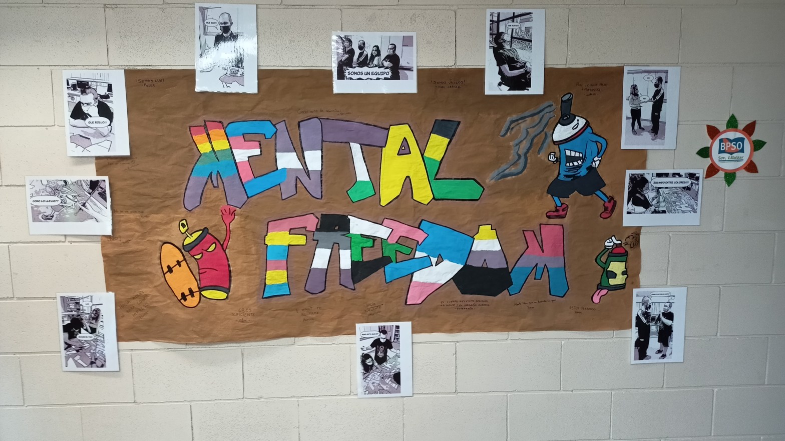 Trabajamos de forma colectiva en el mural. Te invitamos para mejorar nuestra salud mental a desarrollar actividades que tu puedas elegir con otras personas .